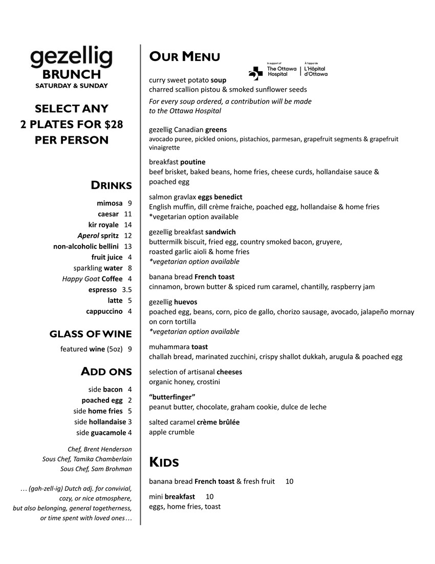 dinner | mon, tue, wed, thurs, sun 5-9 | fri & sat 5-10 lunch | mon to fri 11:30-2 brunch | sat & sun 10-2